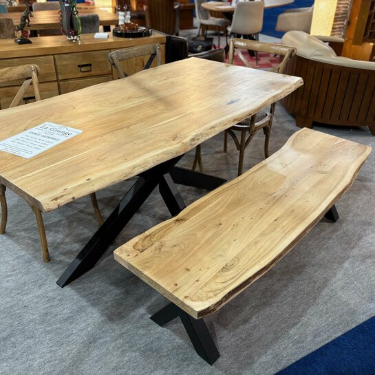 Table à manger en acacia à bord vivant – Élégance naturelle