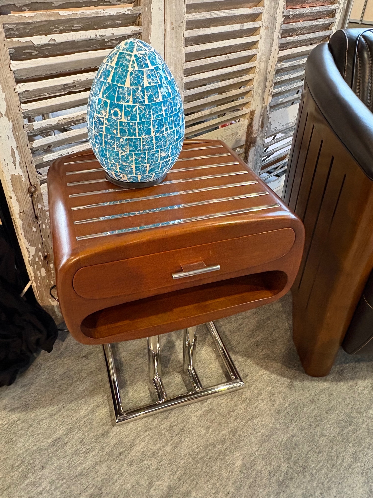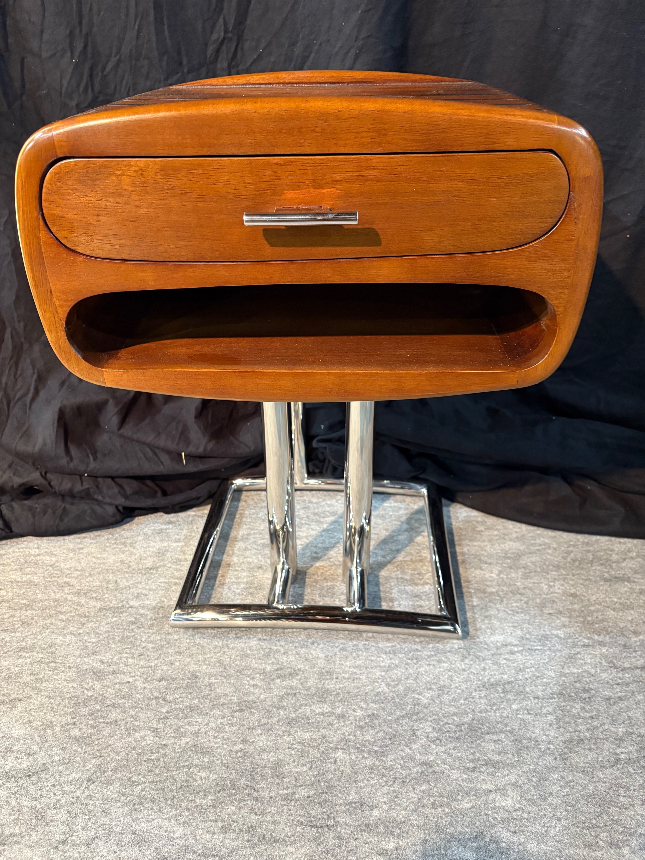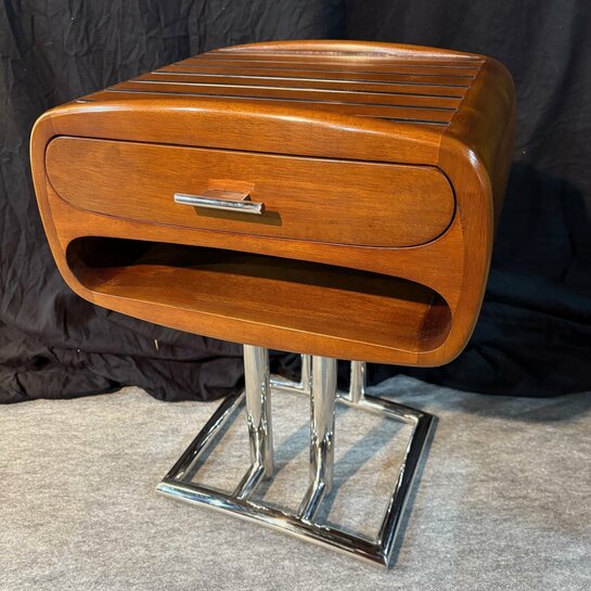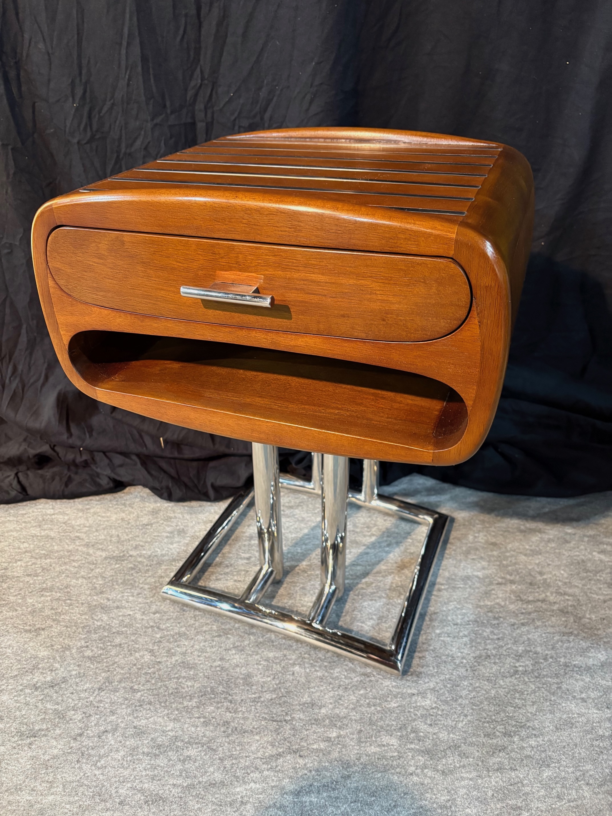 Bout de canapé rétro en inox et bois (hévéa massif), esprit marin et bord de mer.