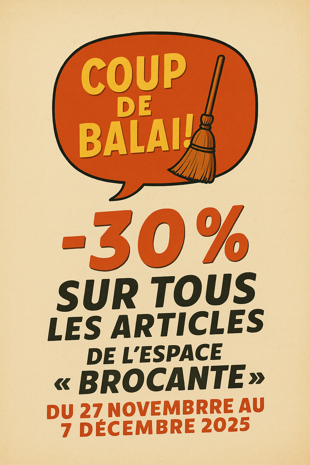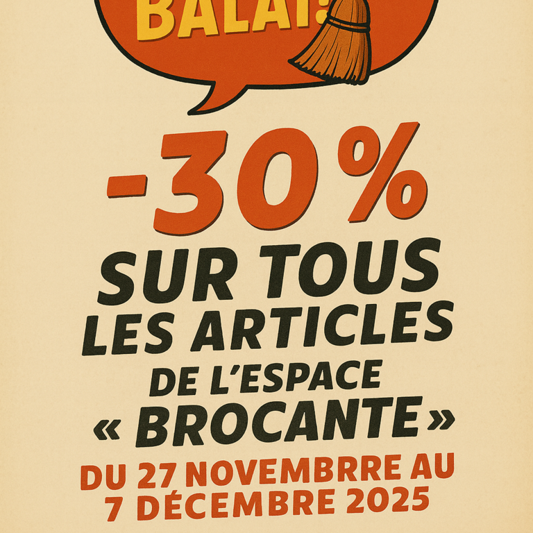 Profitez d’une remise exceptionnelle de –30 % sur tout l’espace brocante :