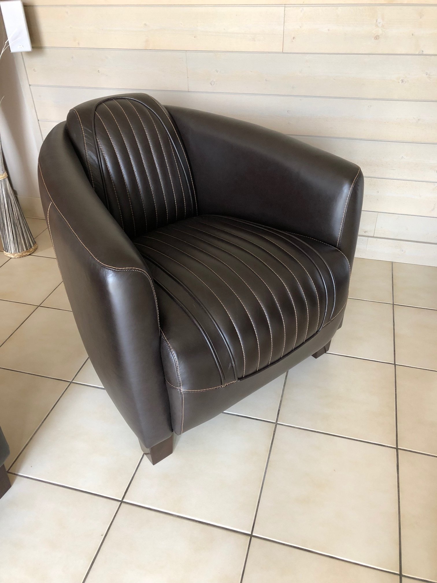 Fauteuil club modèle paquebot sport en cuir vachette « pleine fleur » couleur chocolat.