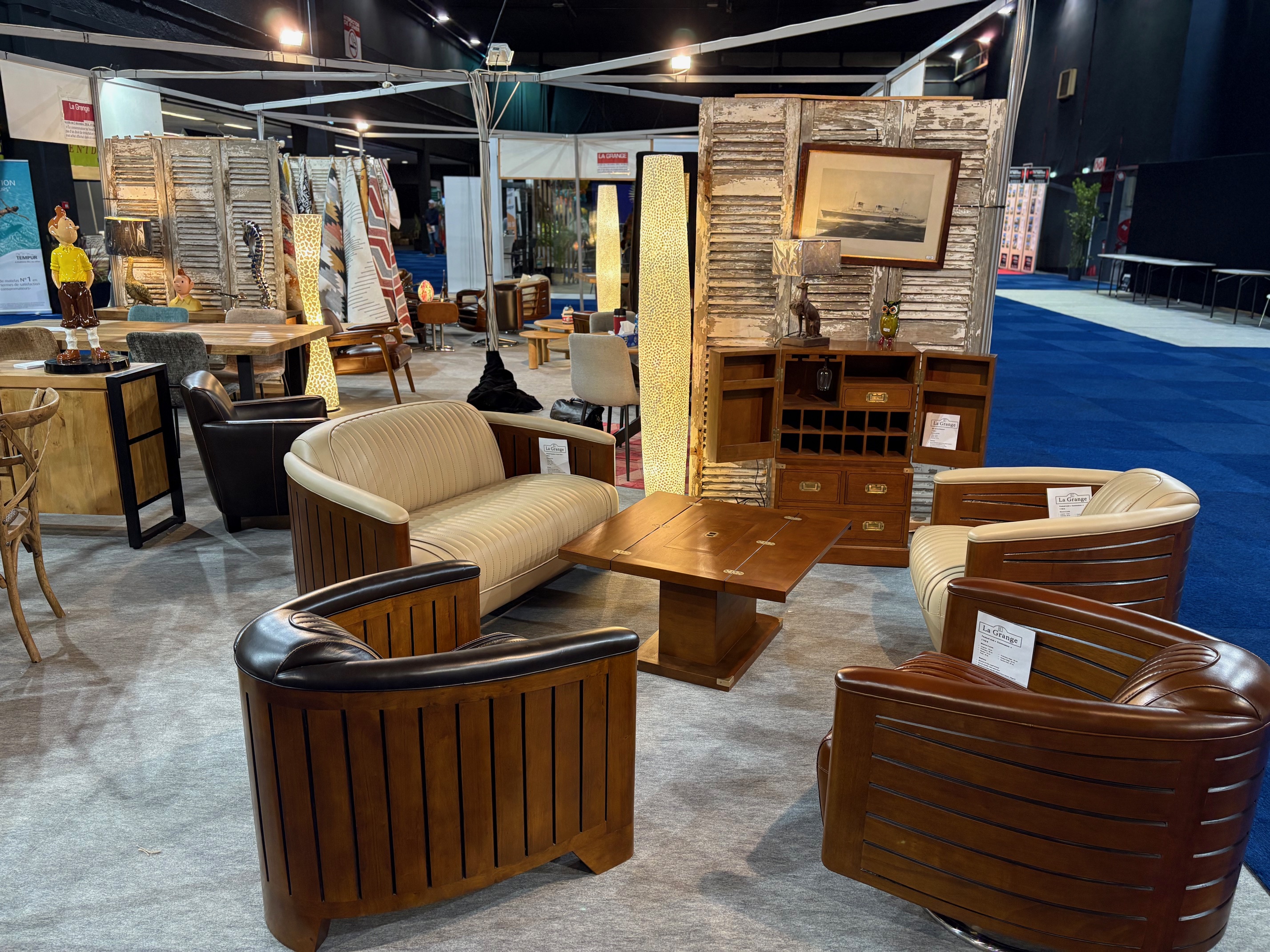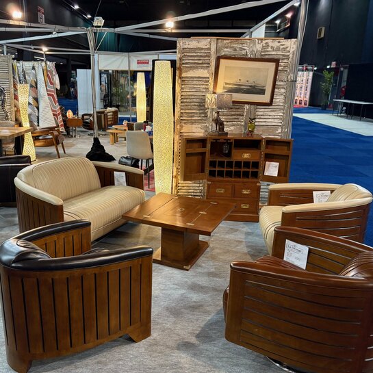 Composez votre ensemble : Fauteuil Paquebot Yacht club chocolat, Fauteuil club Commodore ivoire, Canapé Paquebot Yacht Club ivoire, Table basse marine Newport à rabats, Bar marine Newport