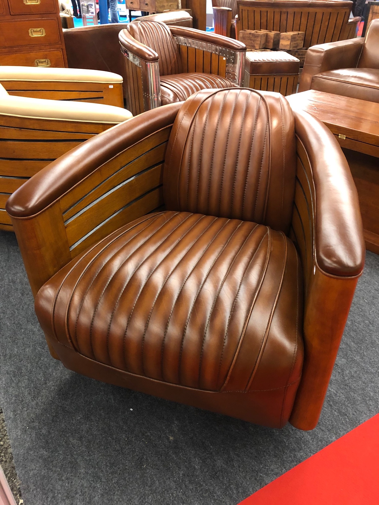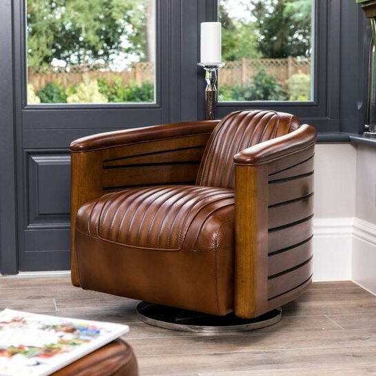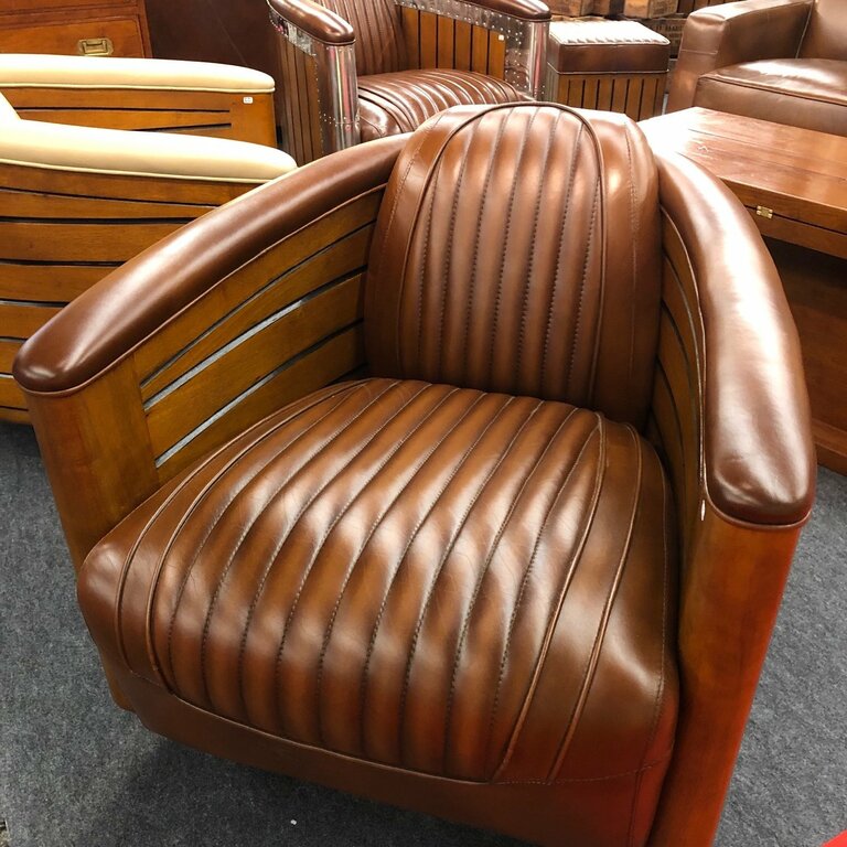 Magnifique fauteuil club pivotant d’esprit marine en finition marron vintage.