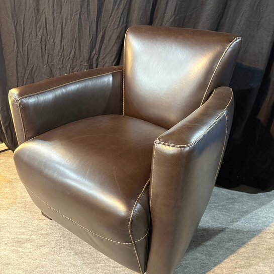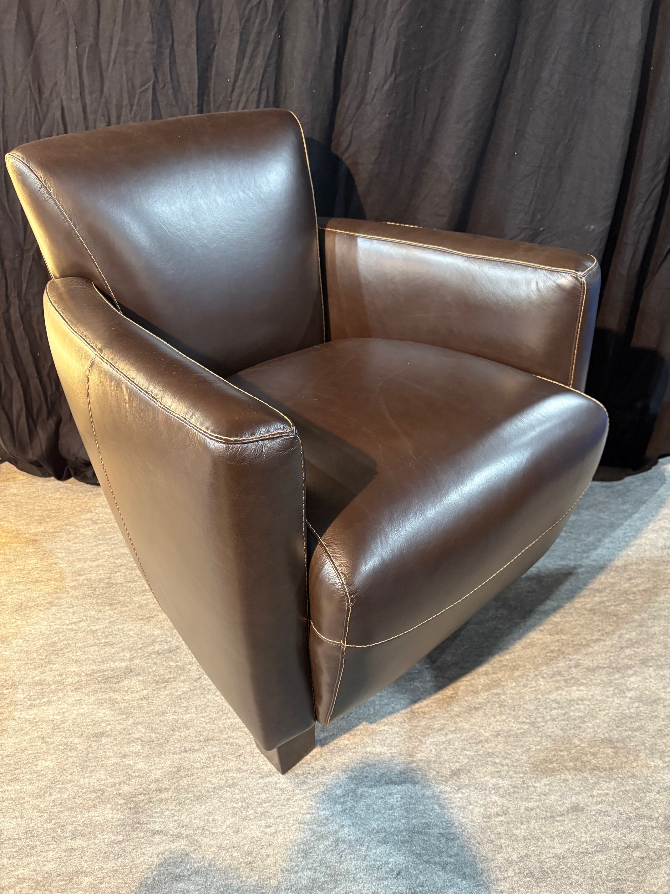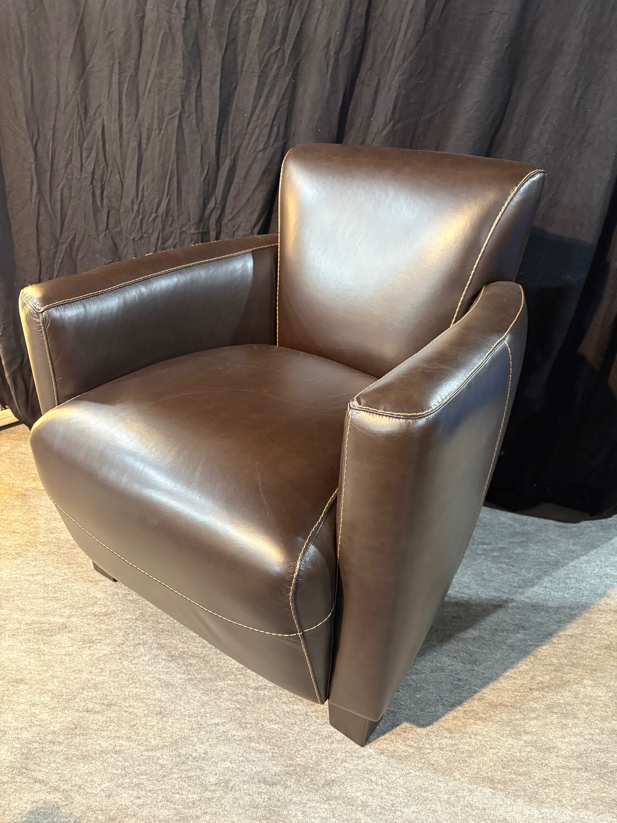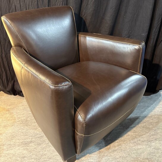 Fauteuil club en cuir vachette « pleine fleur » de très belle qualité de fabrication et de finition.