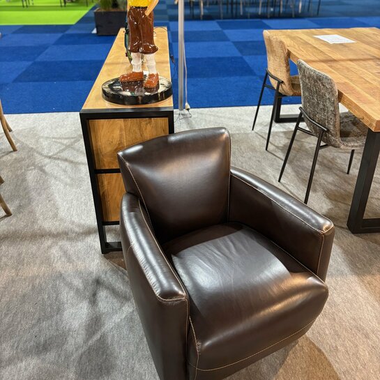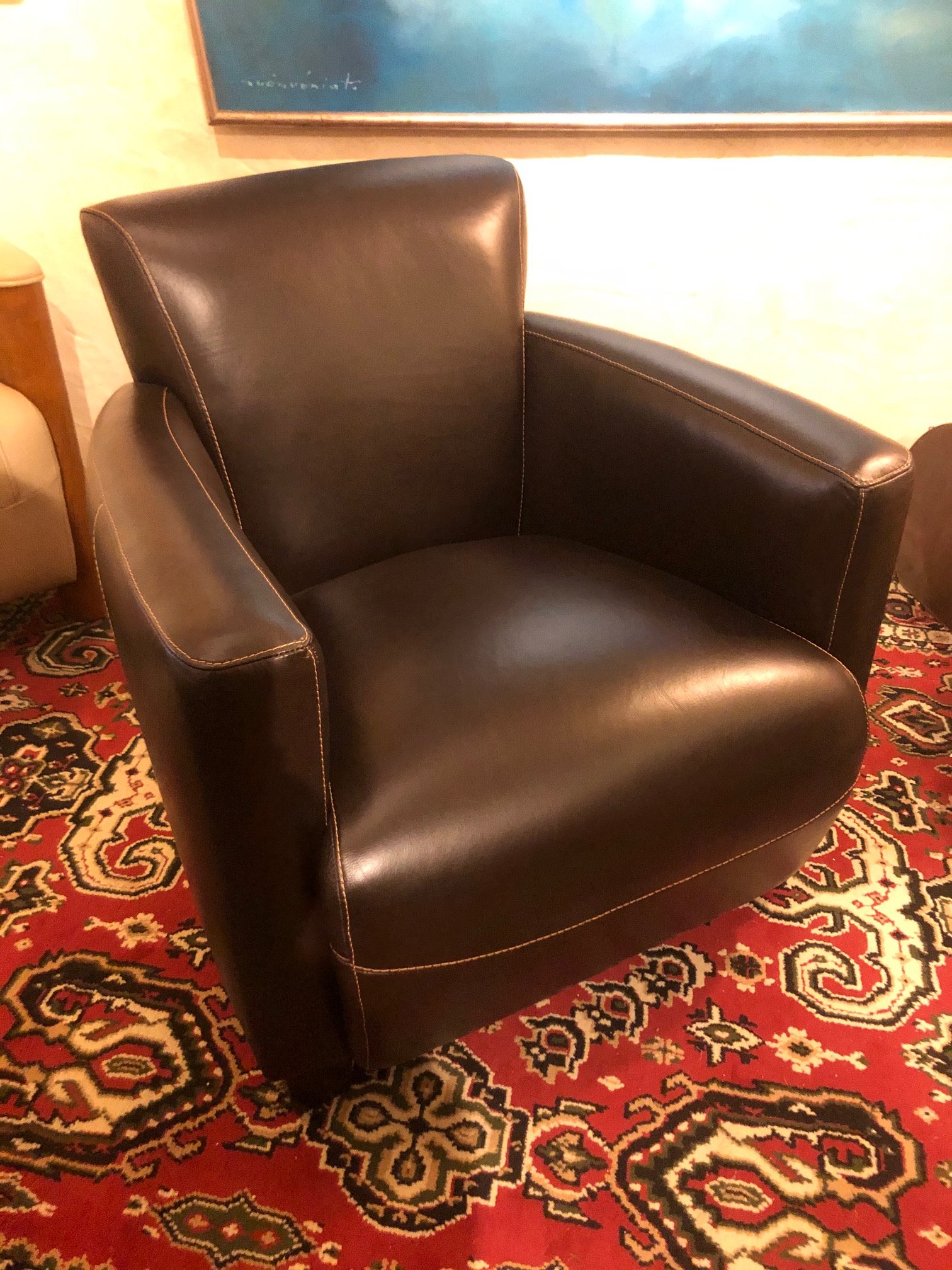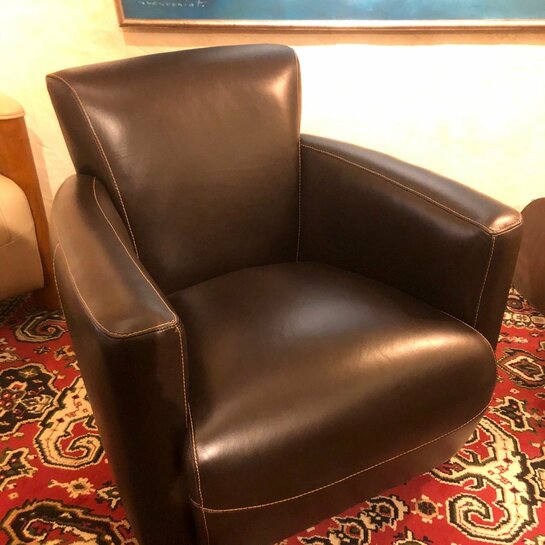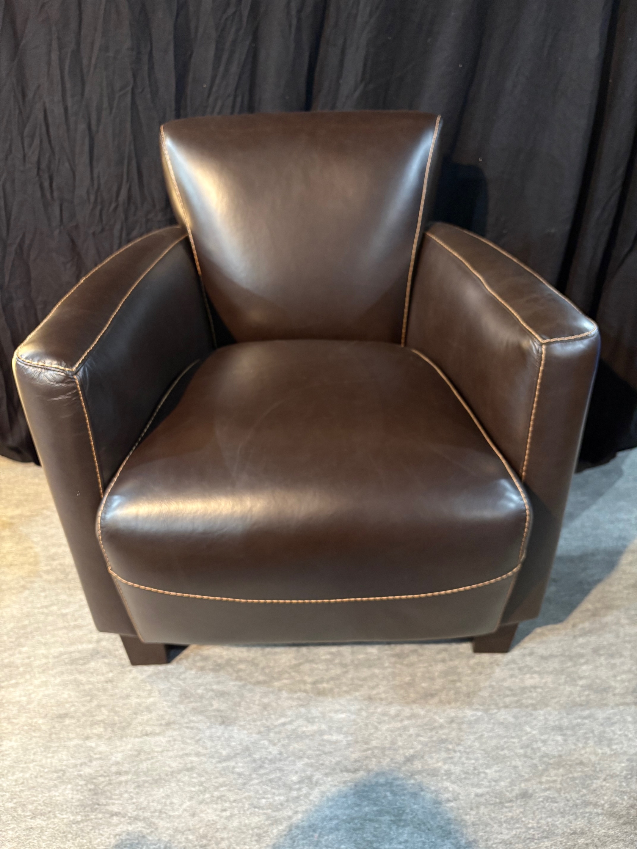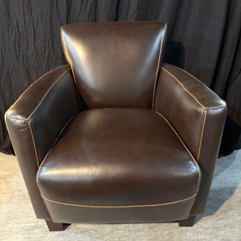 Fauteuil club en cuir vachette « pleine fleur » de très belle qualité de fabrication et de finition.