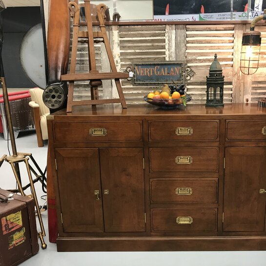 Enfilade d’esprit marin, en bois massif (hévéa), ce meuble de caractère permet un rangement optimal avec ses six tiroirs et ses deux placards.
