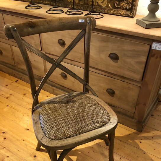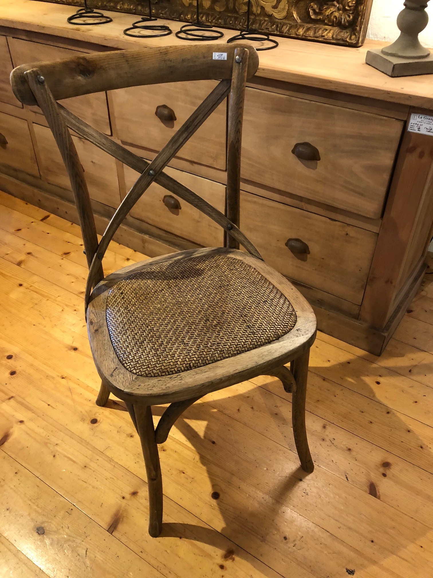 Les entretoises en bois, visibles entre les pieds, ajoutent à la stabilité de la structure tout en renforçant l’authenticité du design. L’assise en ajonc, un matériau naturel et résistant, apporte un confort agréable tout en s’intégrant parfaitement au style traditionnel de la chaise.
