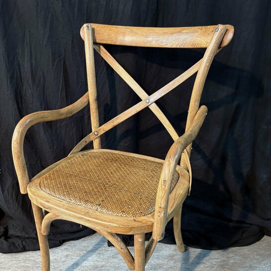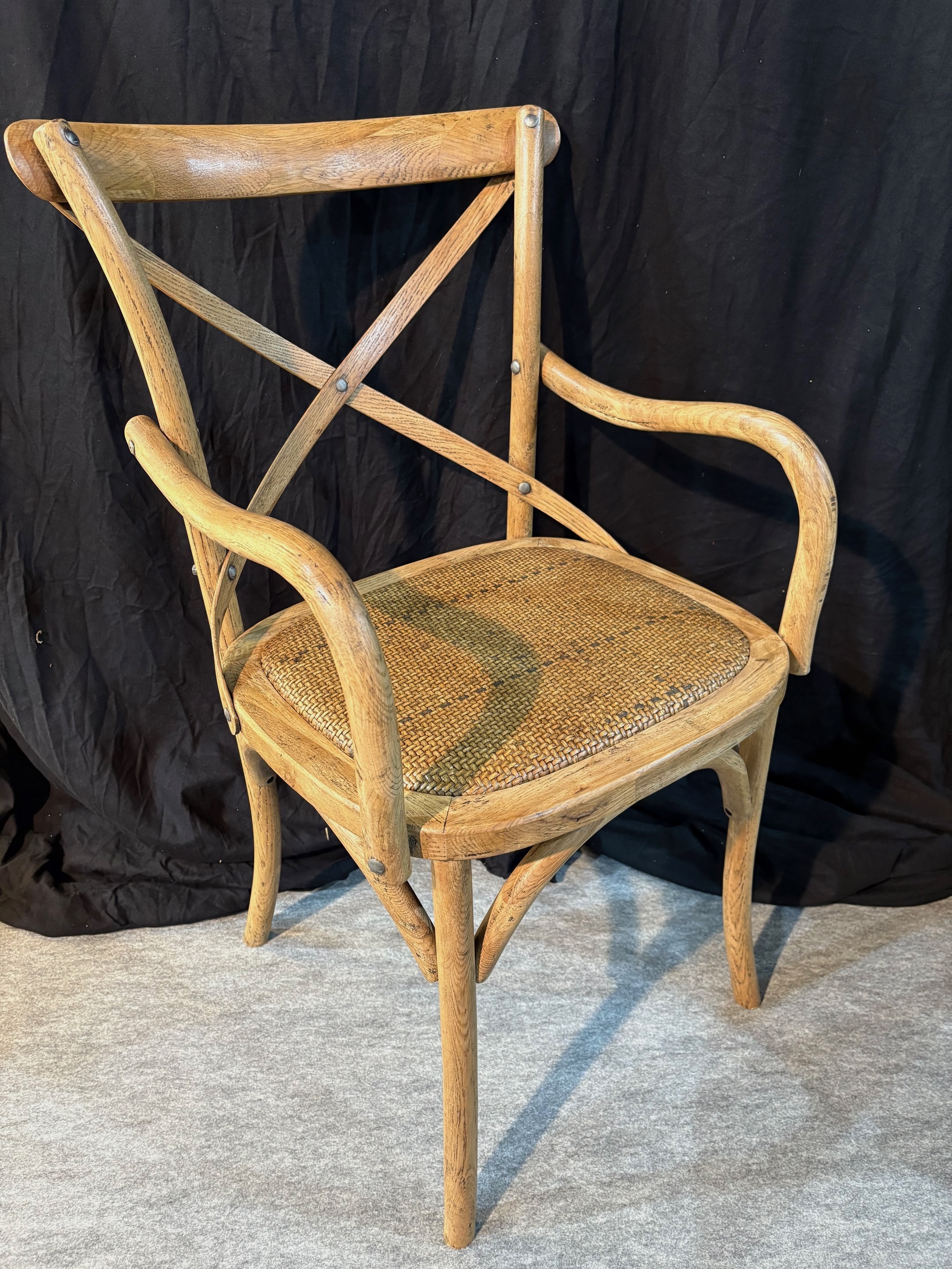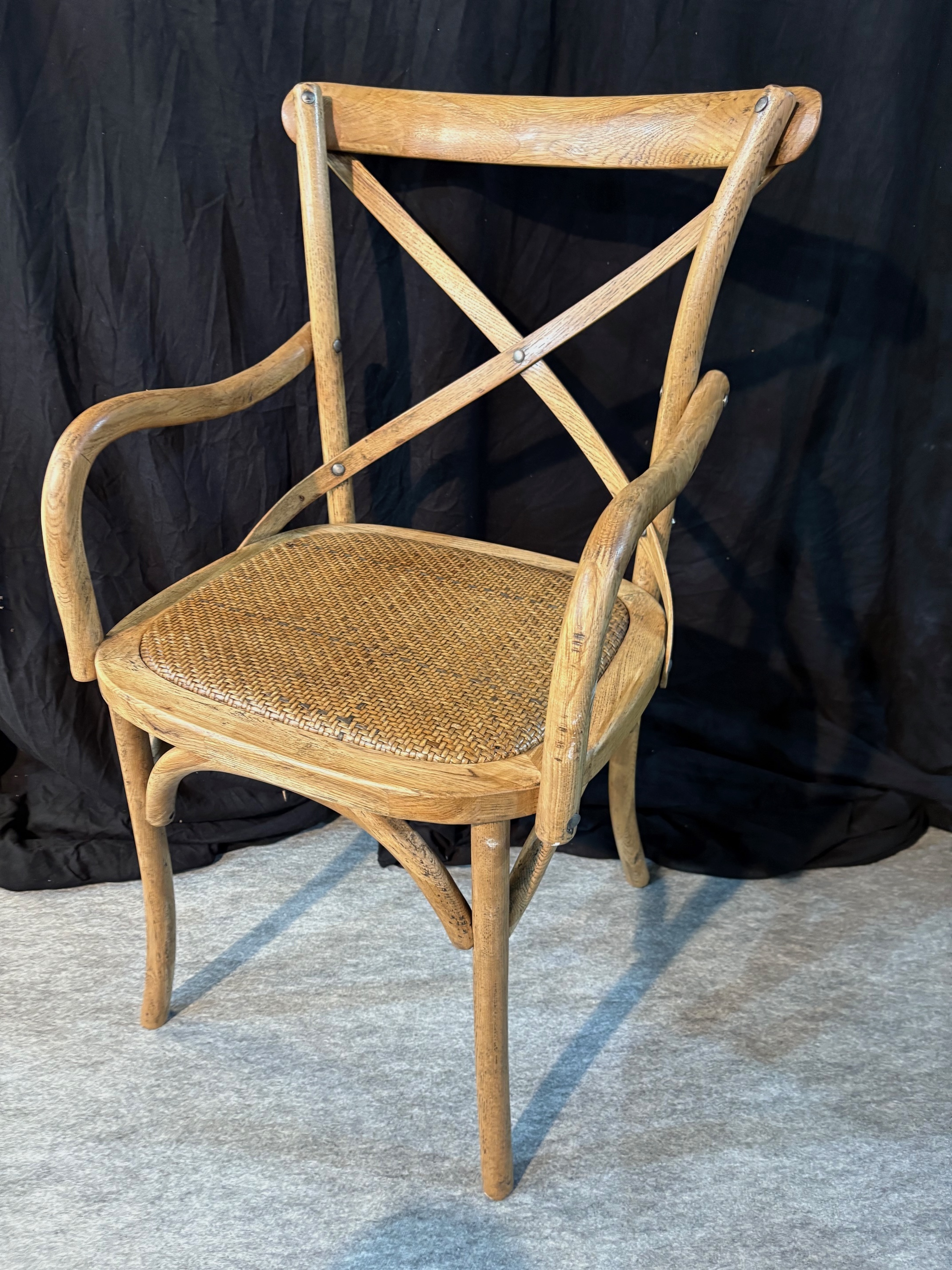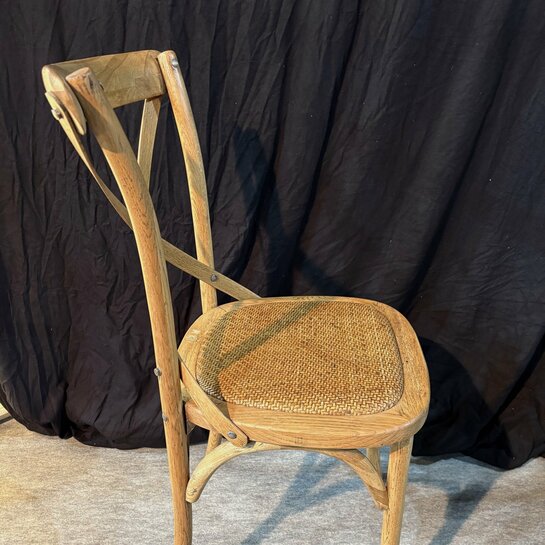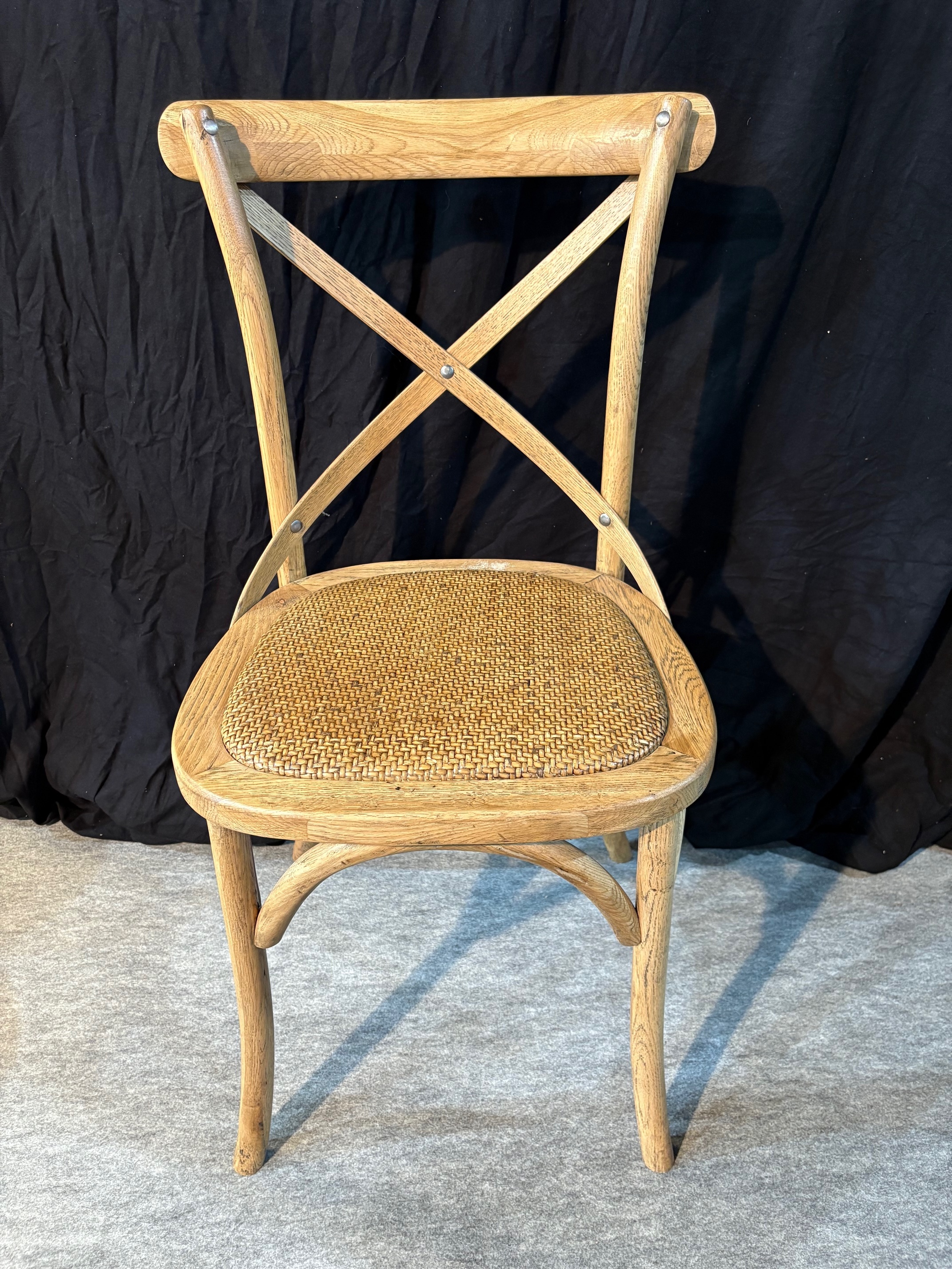 Cette chaise de bistrot est un bel exemple de mobilier élégant et robuste, réalisé en chêne massif. Le bois tourné, qui compose les pieds et le dossier de la chaise, lui confère une esthétique classique et une grande solidité. L’aspect naturel du chêne est mis en valeur par une finition légèrement patinée qui donne à la chaise un charme intemporel.