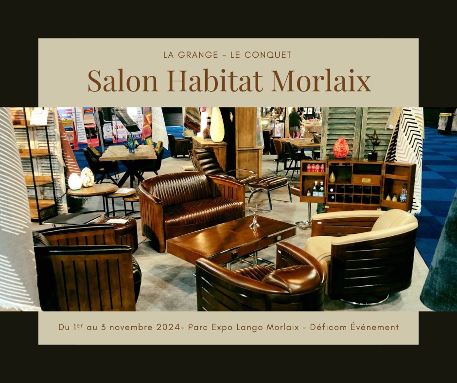 La Grange sera présente sur ce salon au Parc des Expos Lango à Morlaix. Rendez-vous sur notre stand pour découvrir toutes nos nouveautés et surtout profiter de remises sur le mobilier neuf et objets de décoration. Voir les conditions de ventes et livraison auprès de nos conseillers.